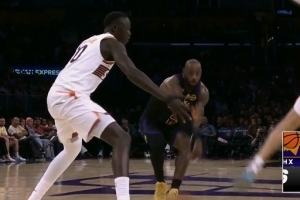 GIF-詹姆斯击地妙传拉拉维亚空切扣篮