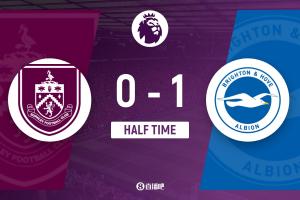 半场结束,伯恩利暂0-1布莱顿。