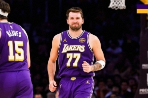 赛后,湖人发布封面人物为东契奇的赢球海报,以及他个人的数据海报。