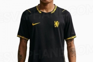 切尔西2026-27赛季客场球衣由耐克设计生产,球衣采用了简约而现代的美学风格,以纯黑色为底色,衣身部分没有任何背景图案、纹理或贯穿性的图形,领口和袖口成为设计亮点。