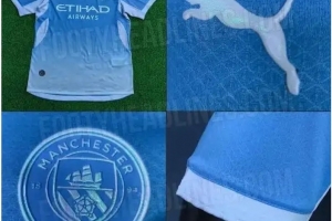 曼城2026-27赛季主场球衣谍照:从上至下由天蓝色渐变为白色