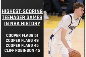 据美记Nate Duncan统计,青少年球员一共打了10818场比赛,得分前三都属于弗拉格,分别是51分、49分和45分。
